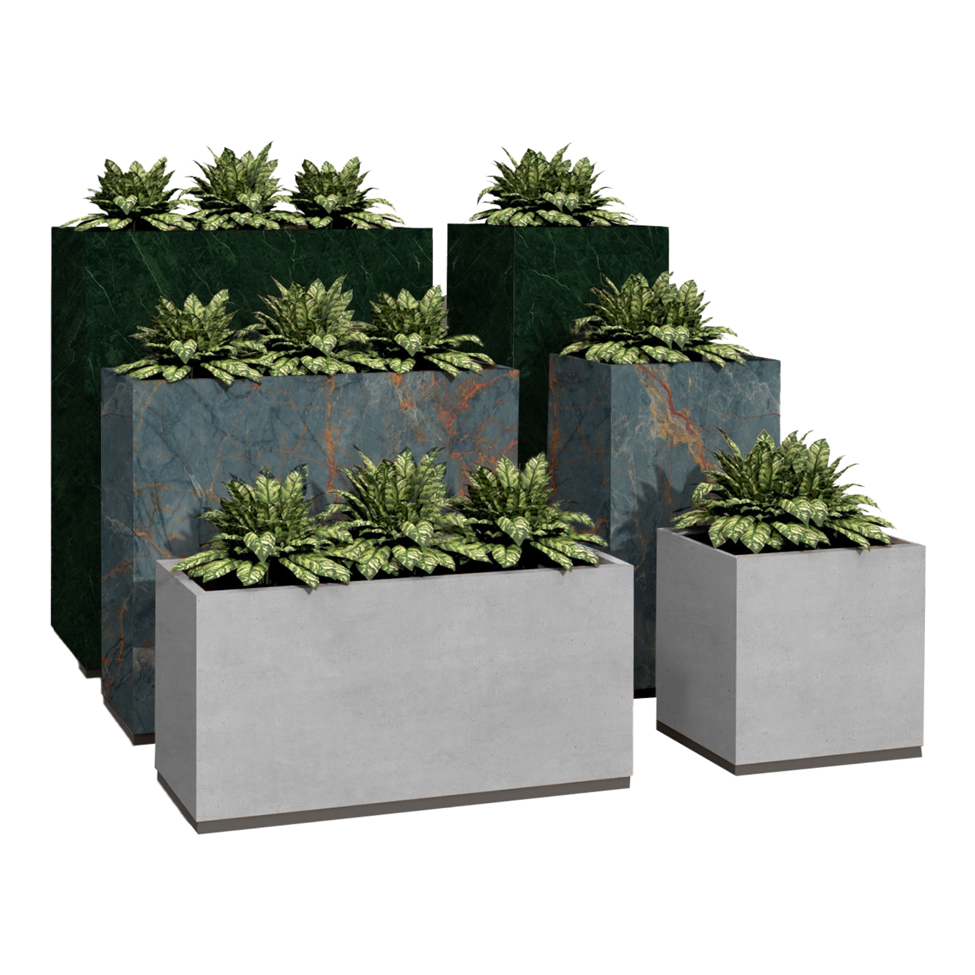 Product shown in Stone Grains 'Green Quartz', 'Grunge Marble' and 'Concrete' . Photo shows 'Concrete'. Plants are not included.