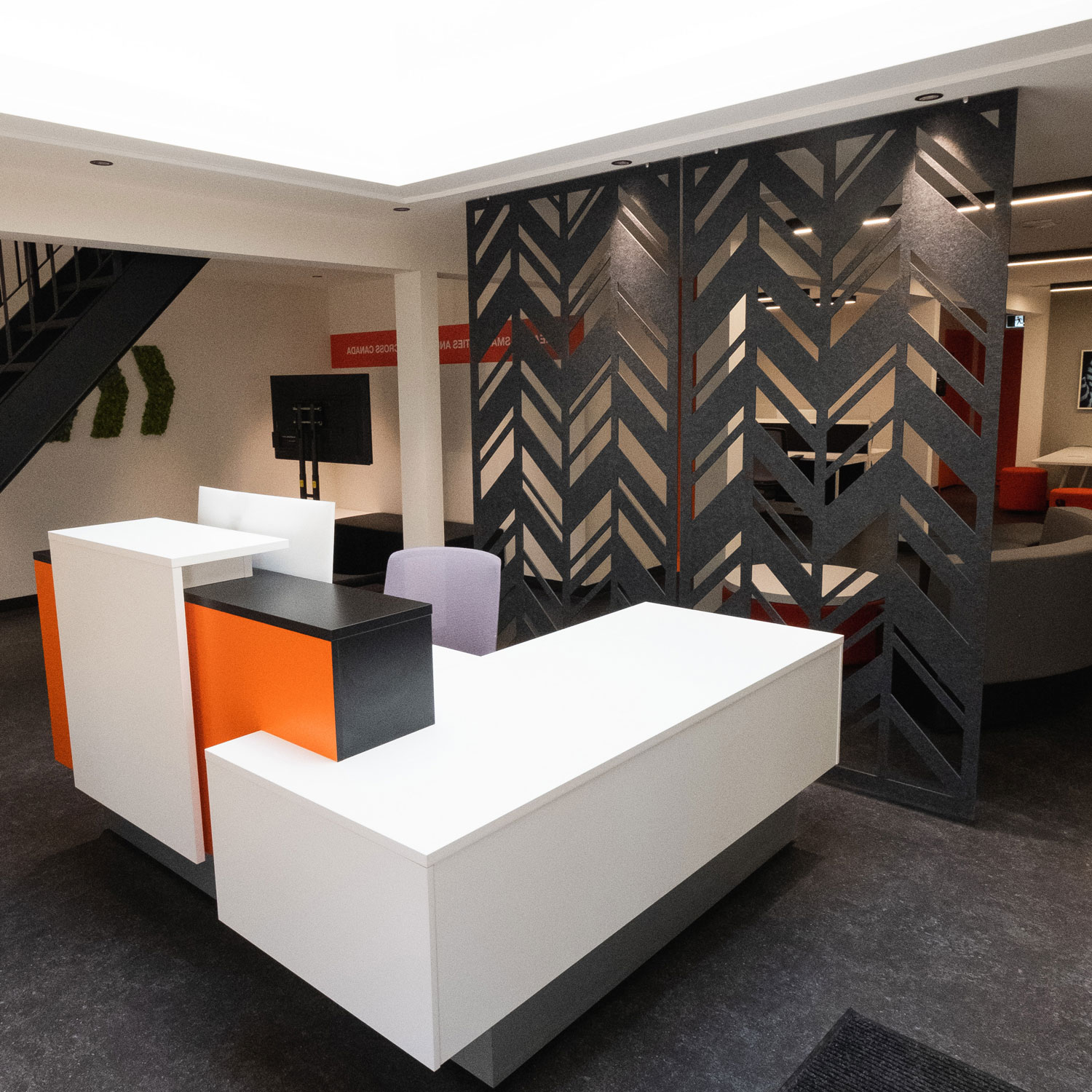 Simple and elegant. Open concept floor plans requiring noise reduction will benefit from our room dividers. We want to maintain the feeling of a shared workspace without encountering acoustical issues. Regardless of how your project is designed and decorated, these dividers can be custom-made to match it.