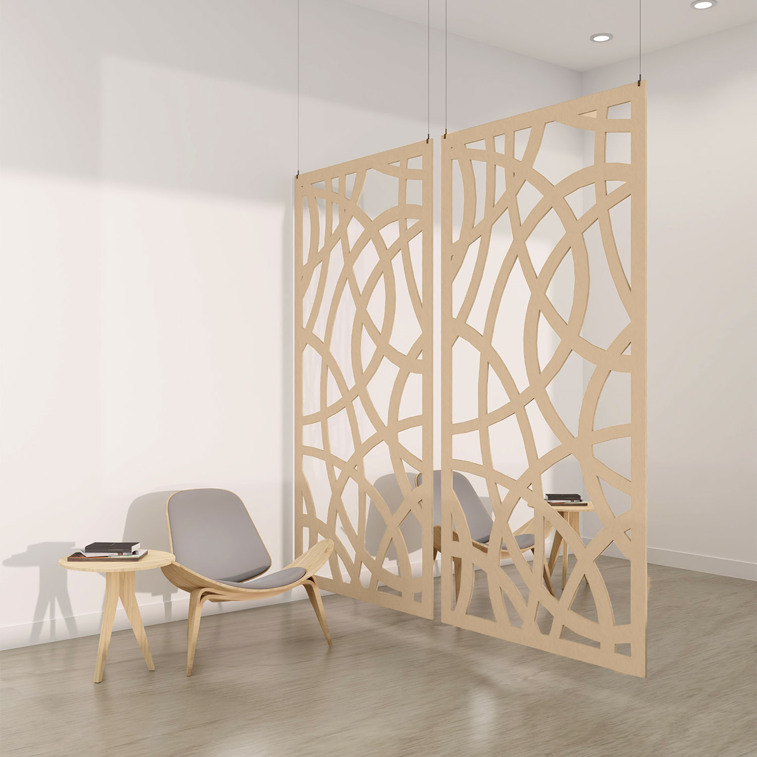 Simple and elegant. Open concept floor plans requiring noise reduction will benefit from our room dividers. We want to maintain the feeling of a shared workspace without encountering acoustical issues. Regardless of how your project is designed and decorated, these dividers can be custom-made to match it.