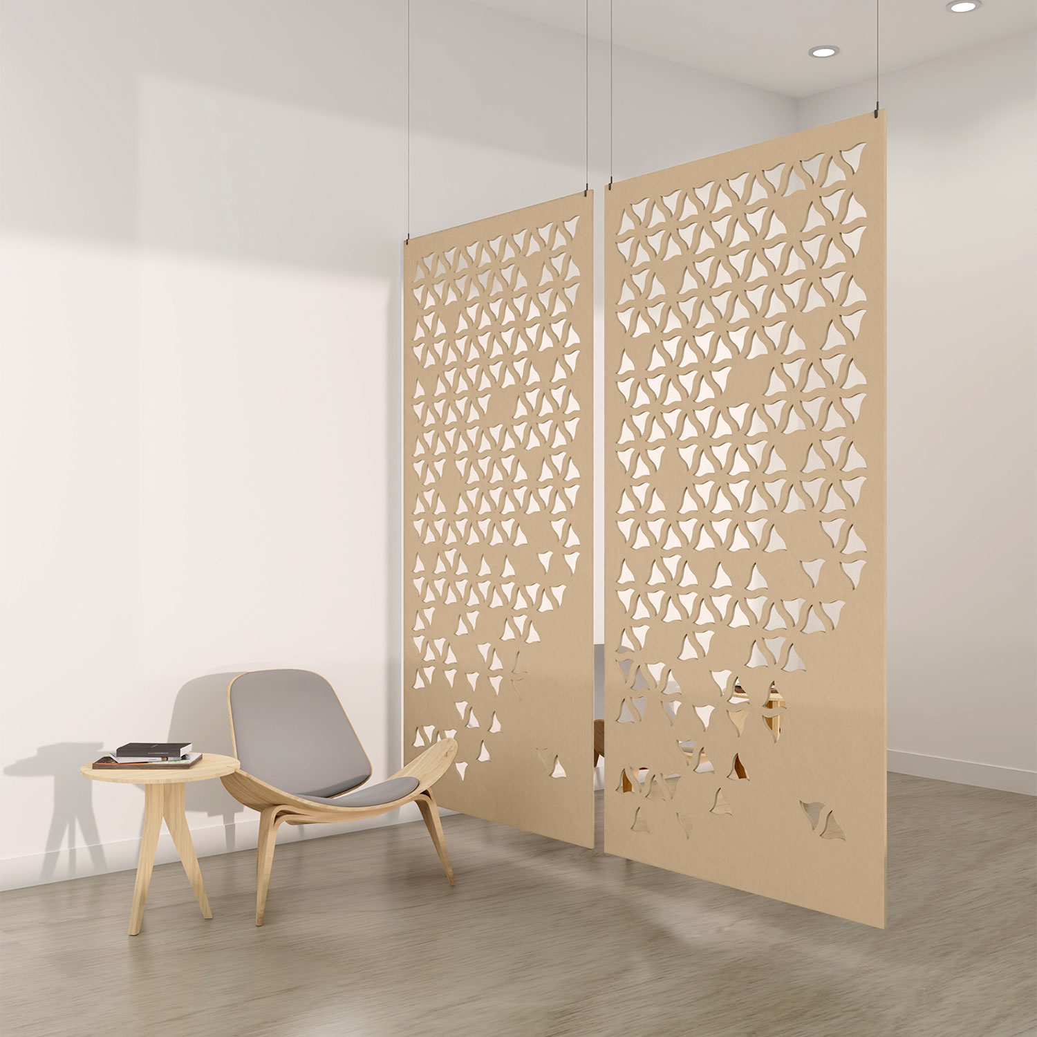 Simple and elegant. Open concept floor plans requiring noise reduction will benefit from our room dividers. We want to maintain the feeling of a shared workspace without encountering acoustical issues. Regardless of how your project is designed and decorated, these dividers can be custom-made to match it.